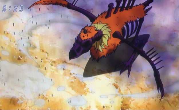 たぶん、小松に捌かれたフグクジラと同様、捌かれた事に気づいていない美食會の乗り物(怪鳥)。