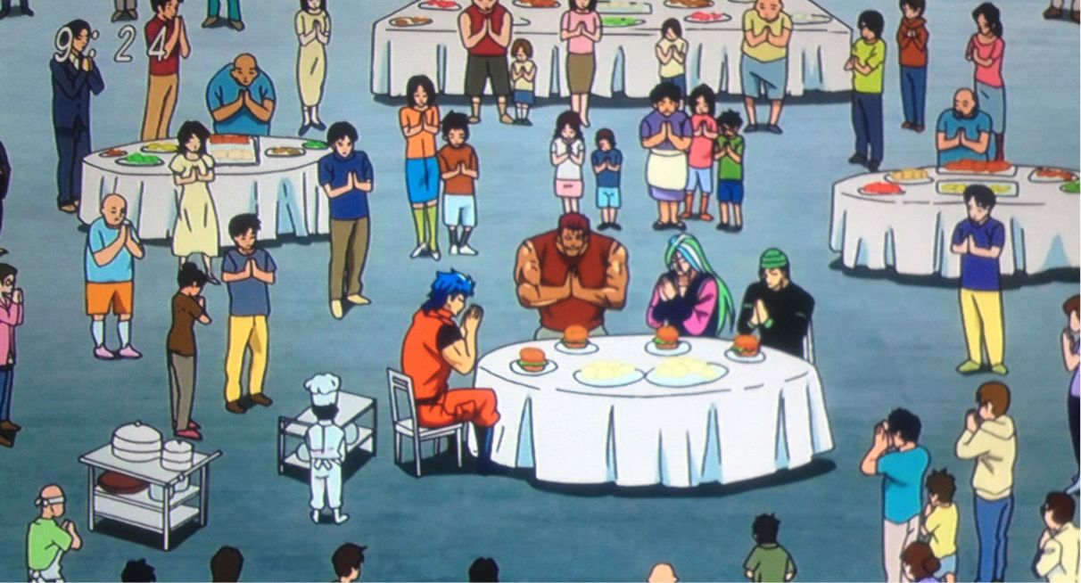 四天王が手を合わせ「いただきます」としたのを見て、皆も手を合わせる。
