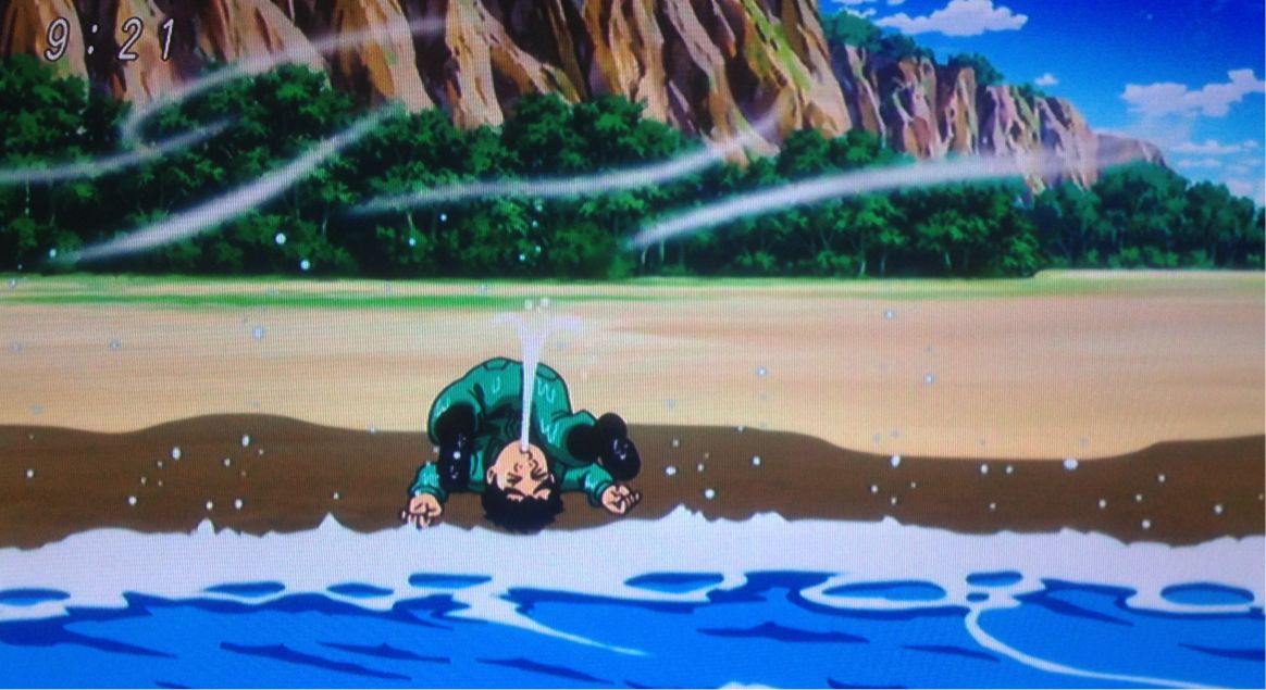 10連釘パンチの余波で、波をかぶってひっくり返る小松、芸が細かい(笑)