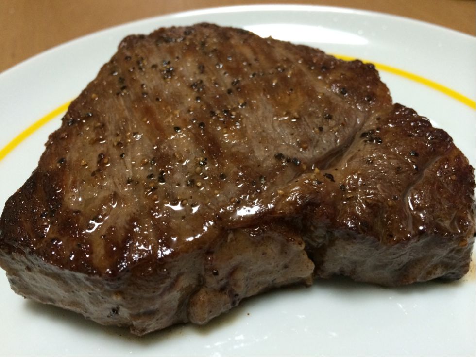 げろちゃんが、ぶ厚いステーキ肉を買ってくれて(普段の食費は我担当)、そして、焼いてくれました!