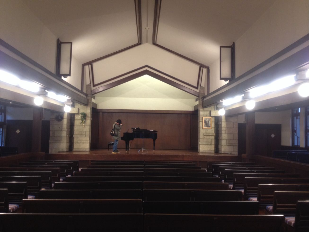 講堂(こちらは弟子の遠藤新氏の手による建物)の中の様子。