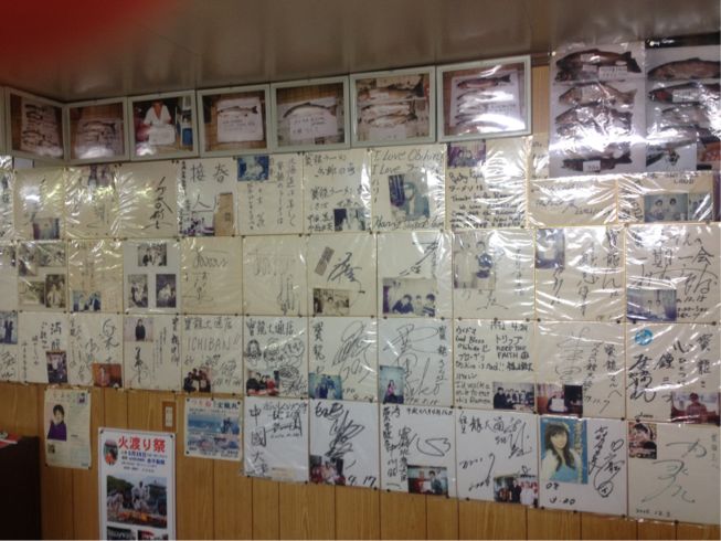 壁一面に、お店を訪れた芸能人のサイン等がびっしり…!