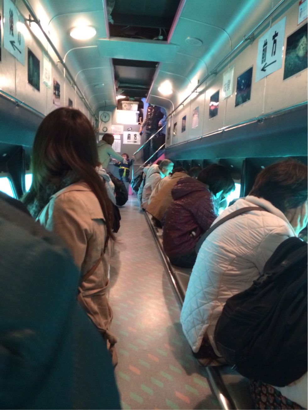 半潜水式になっている、船内の水中展望室の様子。