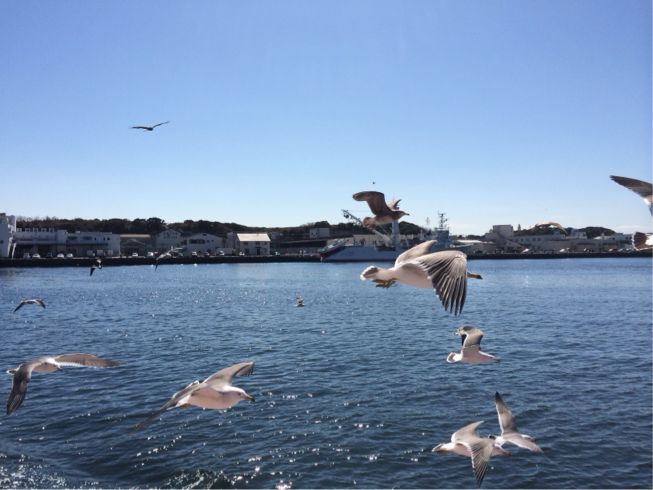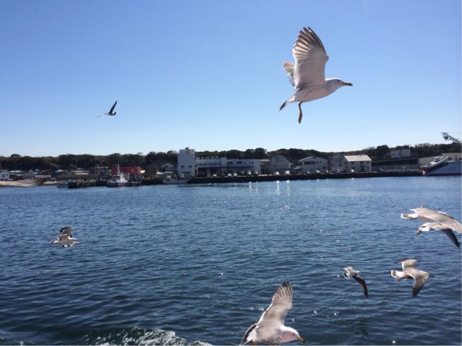カモメ達が船と並走して飛んできますo(^▽^)o