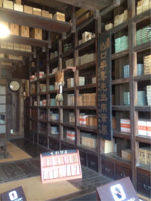 明治初期の文具店で、書道用品が並んでいました。