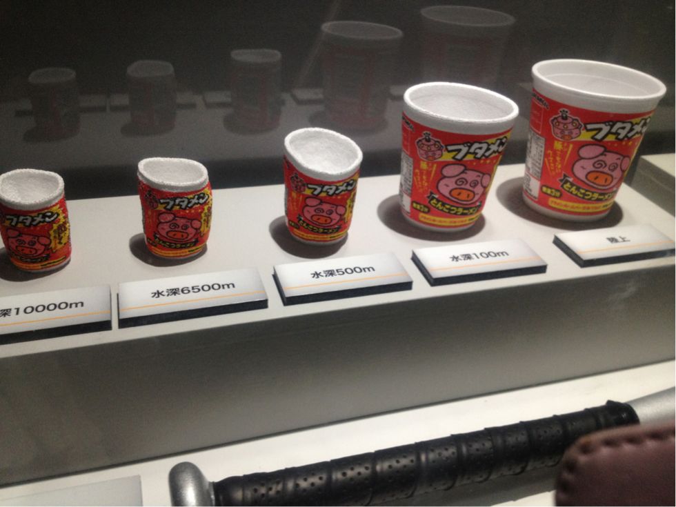 海の深さによってかかる圧力で、『ブタメン』が圧縮されていく様子。