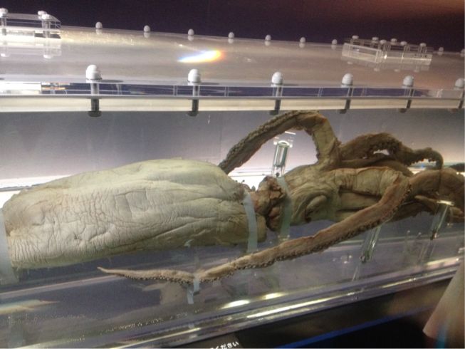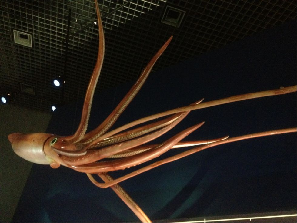 全長18mにもなるという『ダイオウイカ』の模型と実物。
