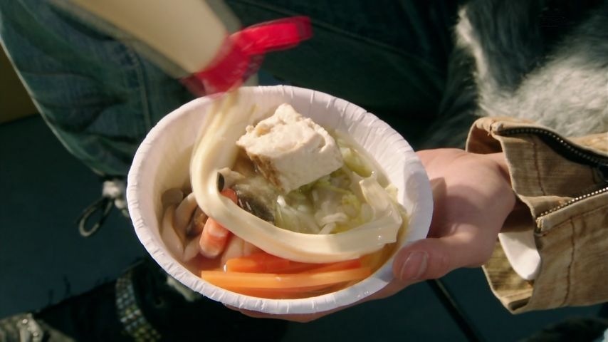 ビルの屋上で生活している仁藤(ビースト)に発見された2人は、鍋をごちそうになる事に…。
