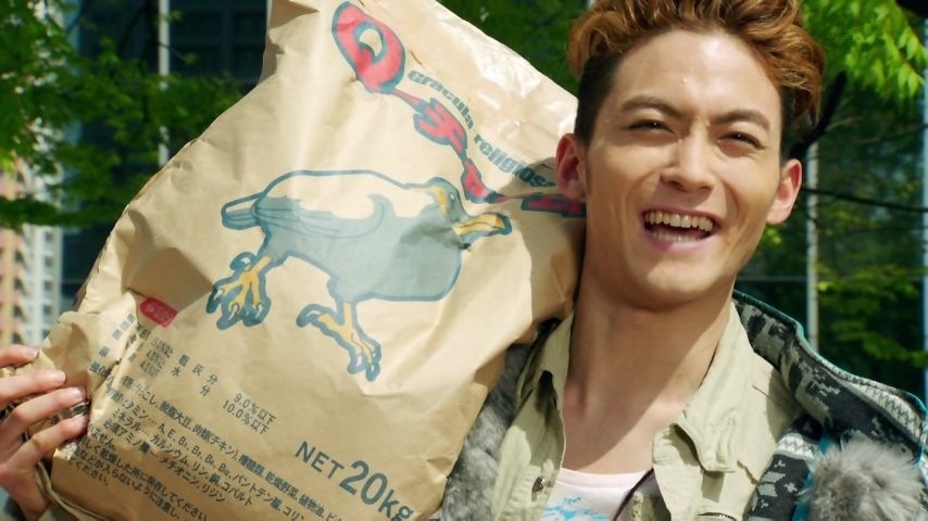 鳥のエサを担いできて、逃げた九官鳥(=ファントム)を探そうとする仁藤…。