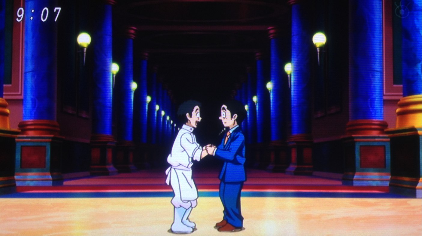 スタジアムの回廊?で、再開する小松と梅ちゃん。