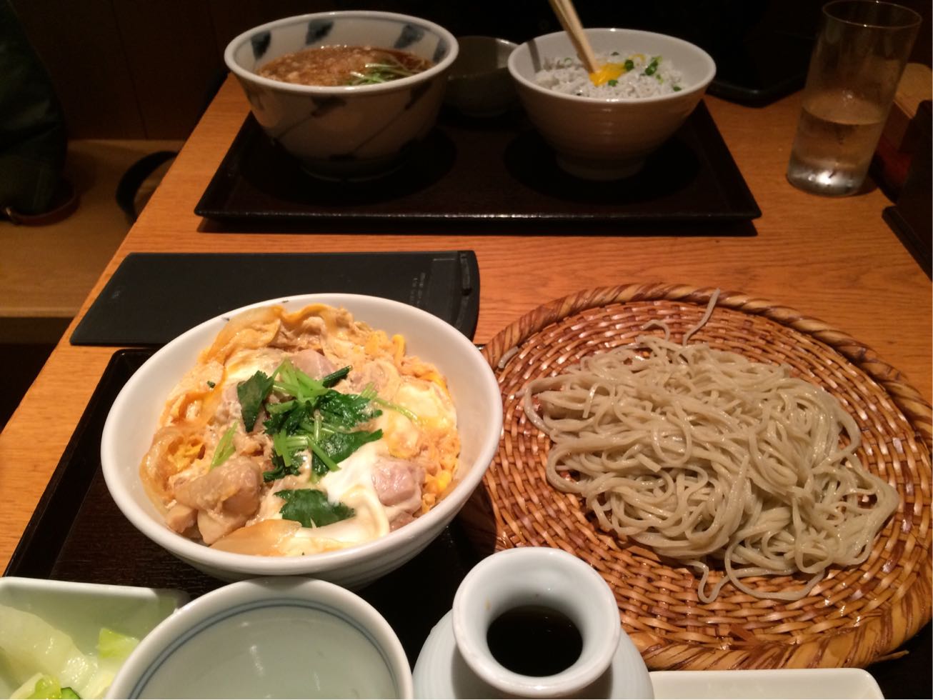 しらす丼と蕎麦(奥側)、親子丼と蕎麦(手前)。