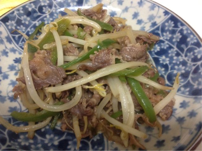 ピーマン、もやしの順に加えて炒め合わせ、全体に油がまわったら、塩、こしょうで味をととのえる。