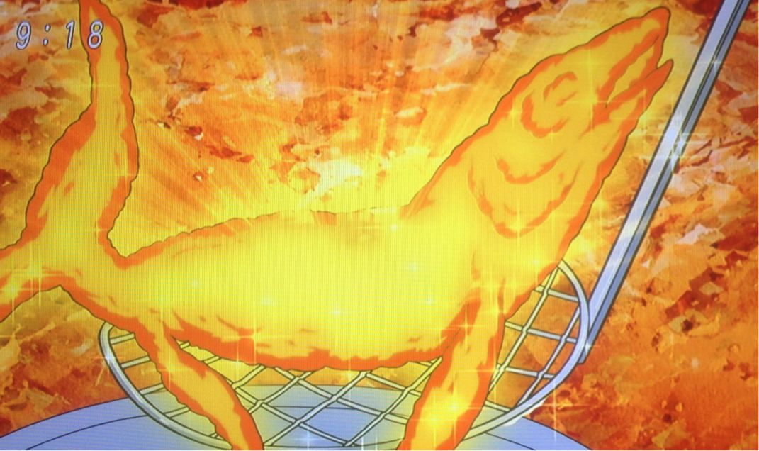 サンサングラミーは、池の水(実はモルス山脈の栄養が凝縮されて溜まった油だった)を使って揚げられる。
