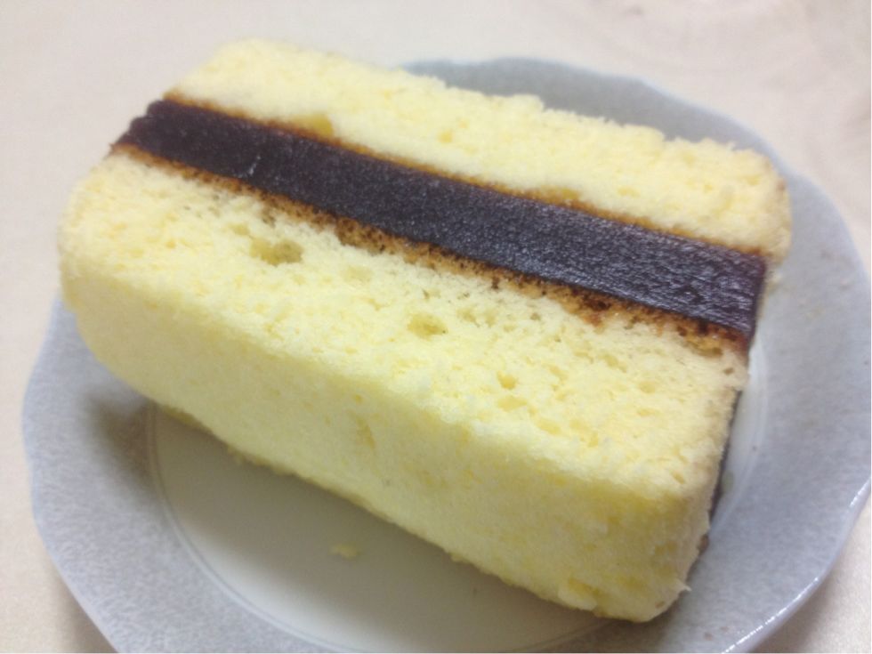 見た目通り、カステラで羊羹をサンドしたお菓子です。