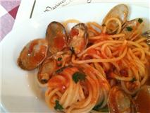 魚貝類のパスタ。3人でシェアして食べたのでペロリ。