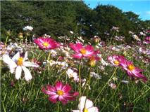 今年はコスモスの開花時期が遅れているらしく、コスモス園の風景はこの通り…。