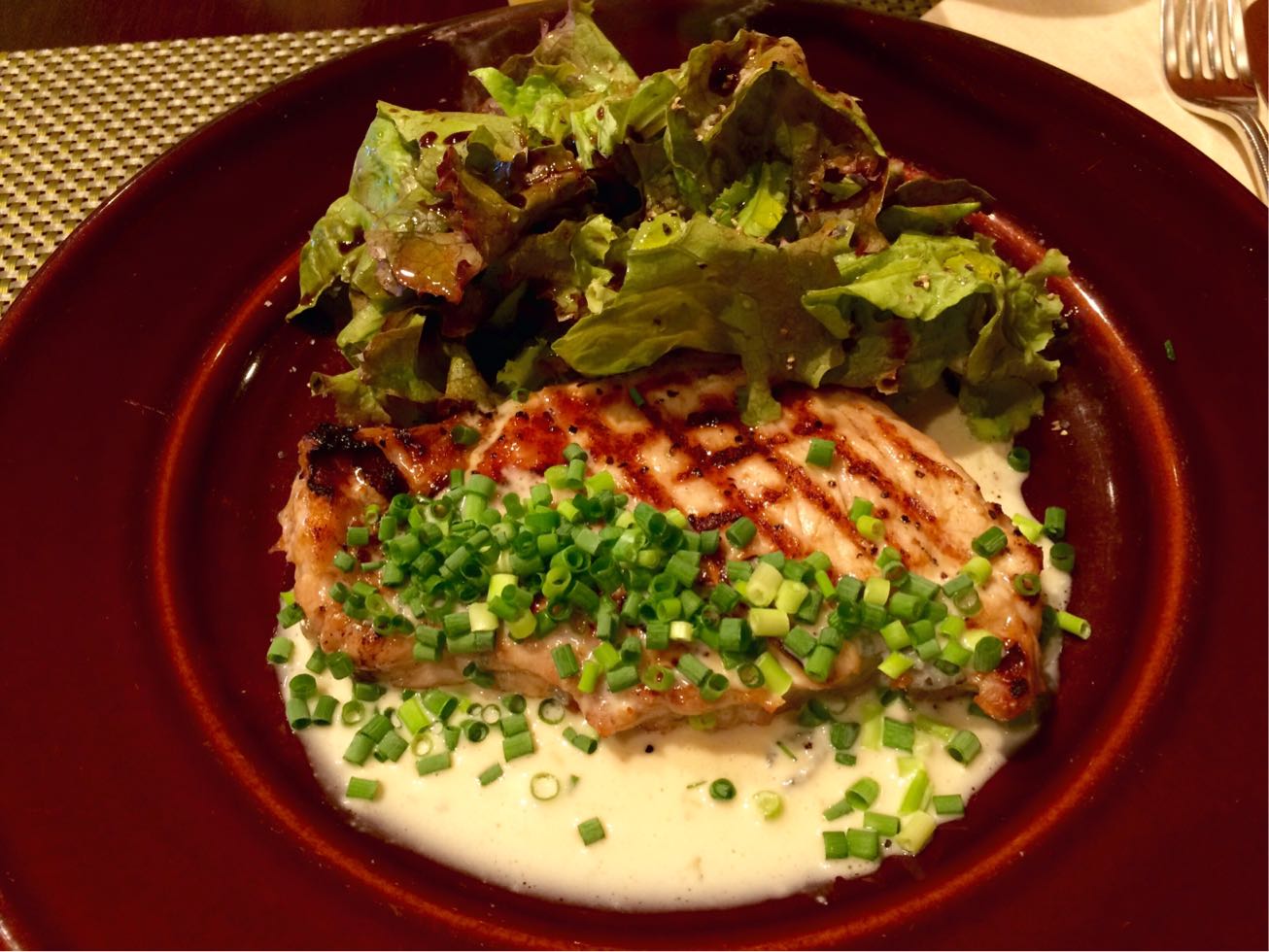 今日のランチは、豚肉のグリル〜ゴルゴンゾーラソース〜。
