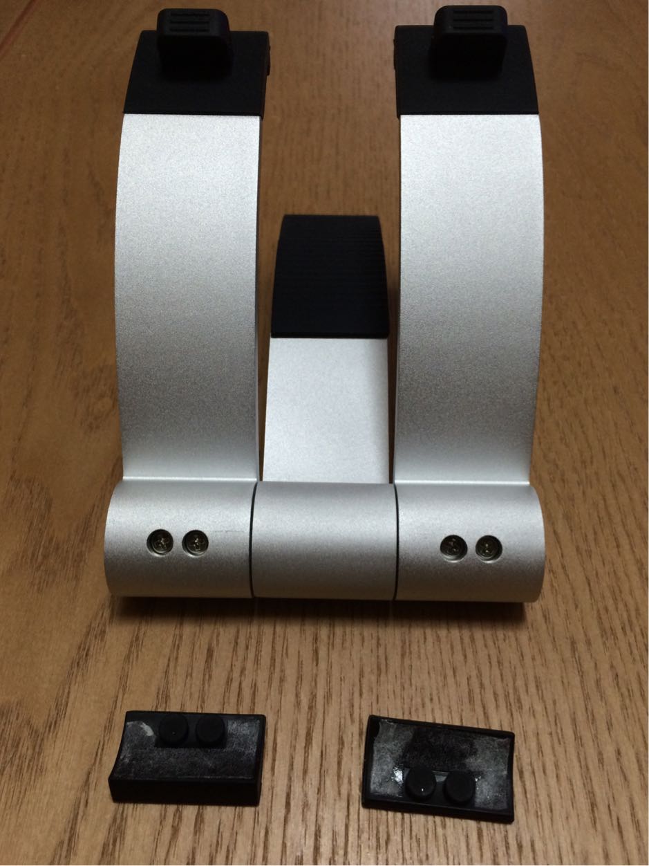 ①スタンドの足にあたる部分、シリコンゴムの滑り止めをゆっくりと外す(両面テープらしきもので付いています)。