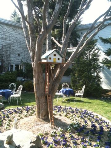 カフェに面した庭の木に、なにやら可愛らしい小さなお家発見。