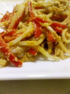 赤ピーマン(パプリカ?)ともやしと卵の炒め物。