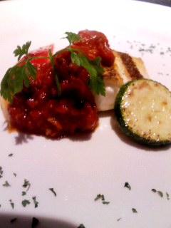 お魚料理。お皿が大きくて、下の方に携帯の影がどうしても入ってしまいます。