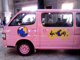 食事をとろうとヴィーナスフォートに入ったら、『あいのり』のラブワゴン(本物)が展示されていたよ!