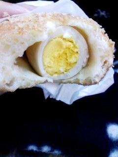 揚げパンの中にそのまま、味付けたまごがころんと入っています(笑)
