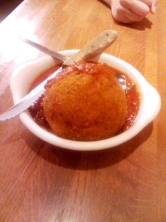 Pのごはん、「シチリア風ライスコロッケ、ミートソースかけ」。