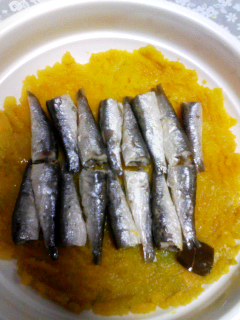 Pのは缶詰のオイルサーディン(イワシの油漬け)。