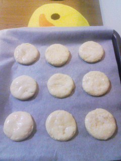 ⑧ ⑦をオーブンシートをしいた天板に並べ、表面にハケで牛乳を塗り、220℃のオーブンで12~15分焼く。