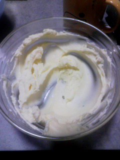 ① ボウルに無塩バターを入れ、なめらかなクリーム状になるまで空気が入らないようにすり混ぜる。