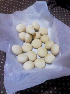 ④ 生地を40等分にして、ひとつずつ手で丸め、オーブンシートを敷いた天板の上に並べる。
