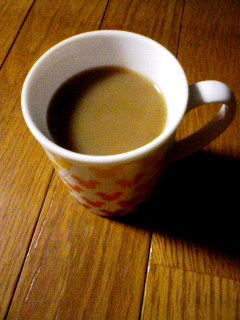 ③ 電子レンジから取り出したカップの中に、①のコーヒーを注いで、よくかきまぜて出来上がり。