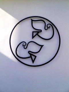 八幡宮の「八」の字が、よく見ると鳩の形をしています。