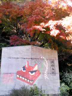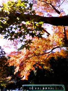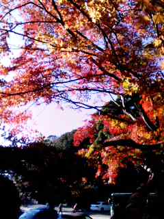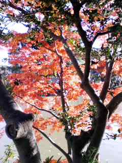 ↓源平池(源氏池)をバックにした紅葉です。