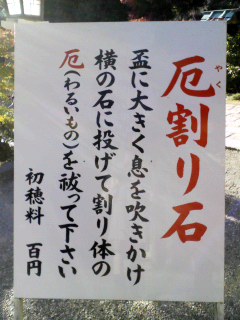 厄割り石に向かって投げます。