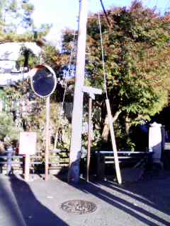 ↓この道の分岐点(右は瑞泉寺に行く方向)を左に曲がります。(カーブミラー&ポスト側)
