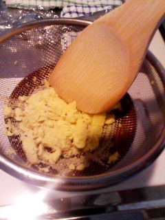 ③ 熱いうちに、皮を剥いて裏ごしする。