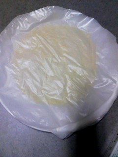 ・もう1枚のオーブン用ペーパーをのせ、ラップをふんわりかける
