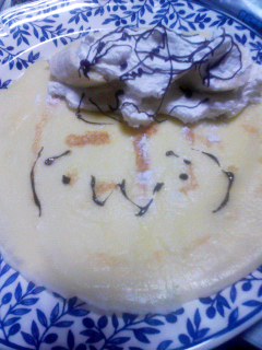 チョコペンでチョコをかけ、ついでに絵も描くげろたん。
