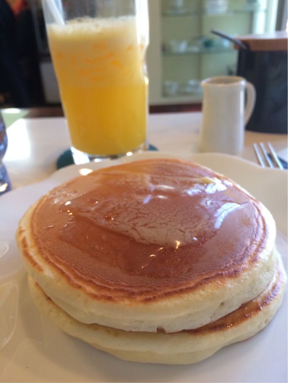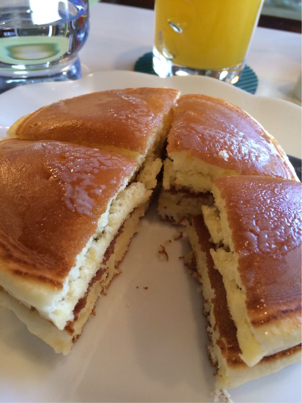 ホットケーキには、テーブルに運ばれてきた時から既にバターがつやつやに塗られていました。