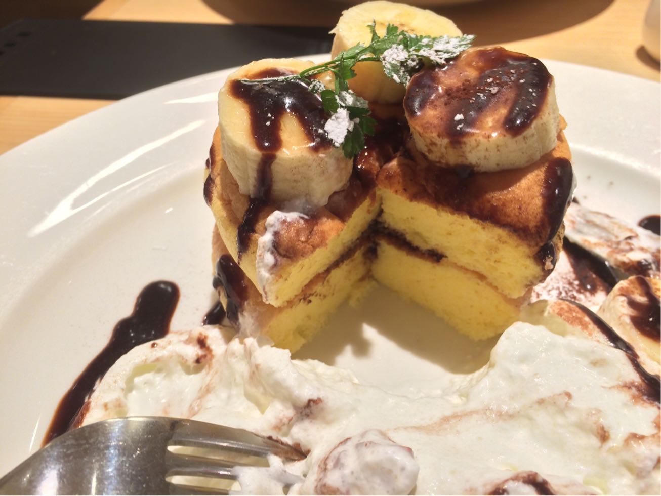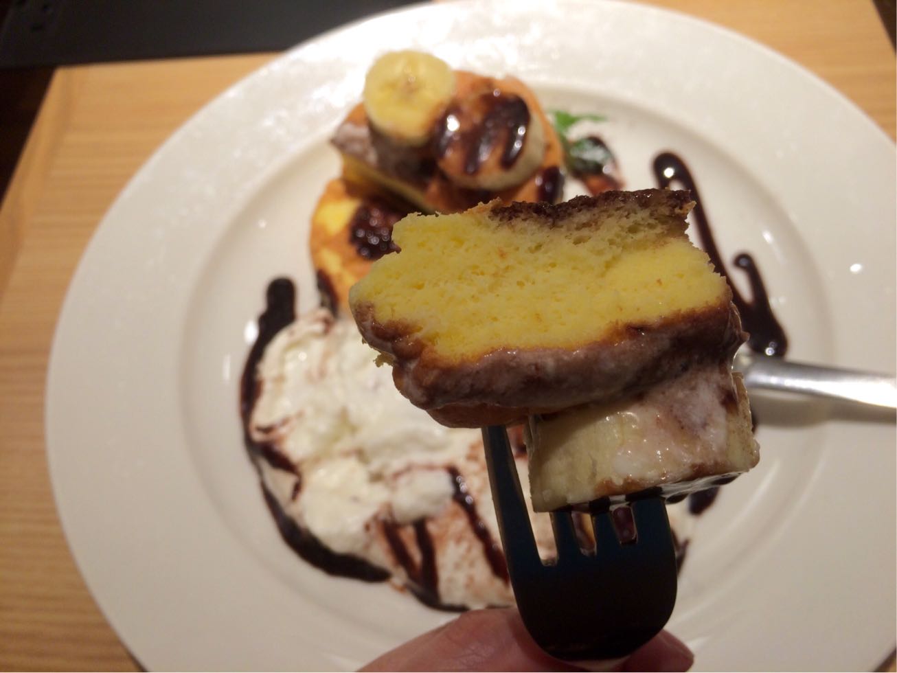 コチラのパンケーキ、スフレ生地になっており、めっちゃふわふわ( ´ ▽ ` )
