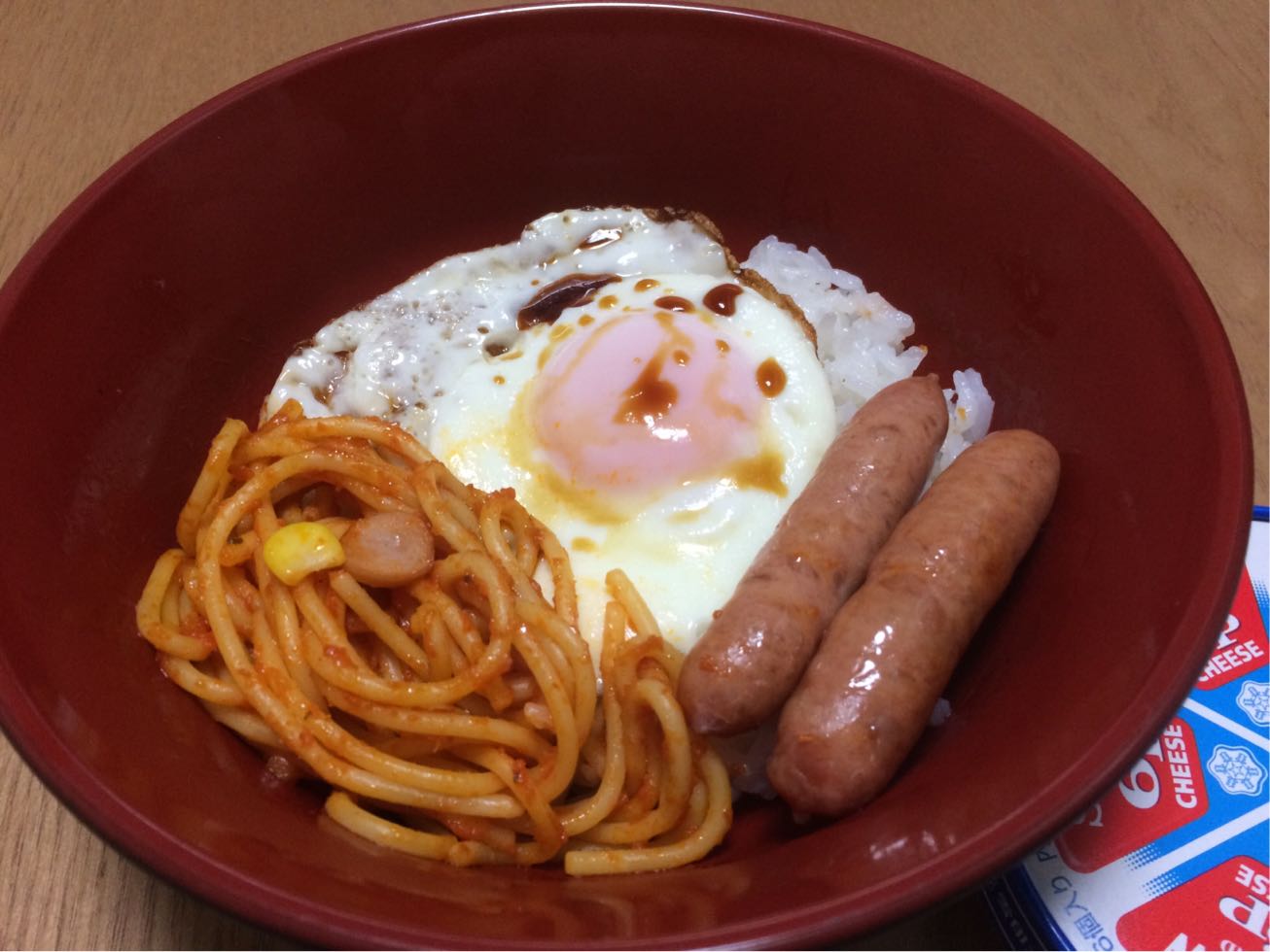 私のは、お弁当の残りのナポリタンものっけてあります。