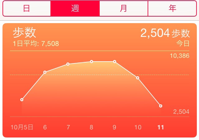 平日はだいたい7000歩以上、そして当然だけど土日は極端に少ないです(笑)