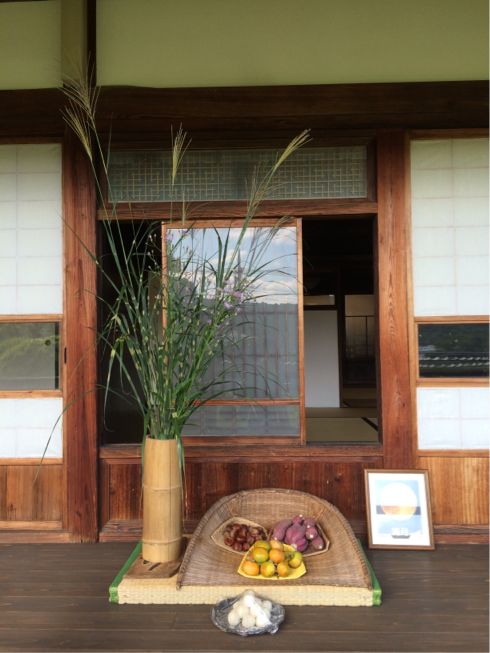 縁側には、お月見用のススキやお団子がありました。