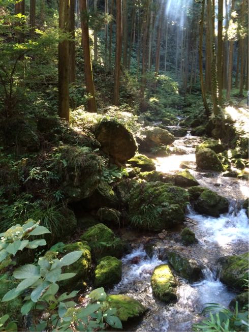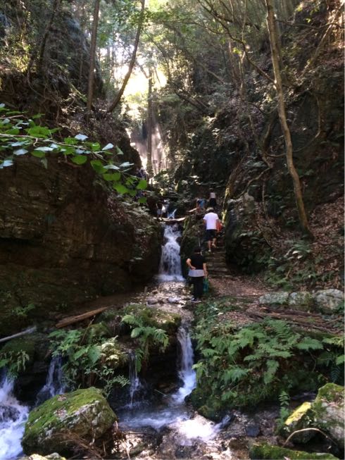 駐車場から渓流に沿って、歩いて山道を登っていきます。