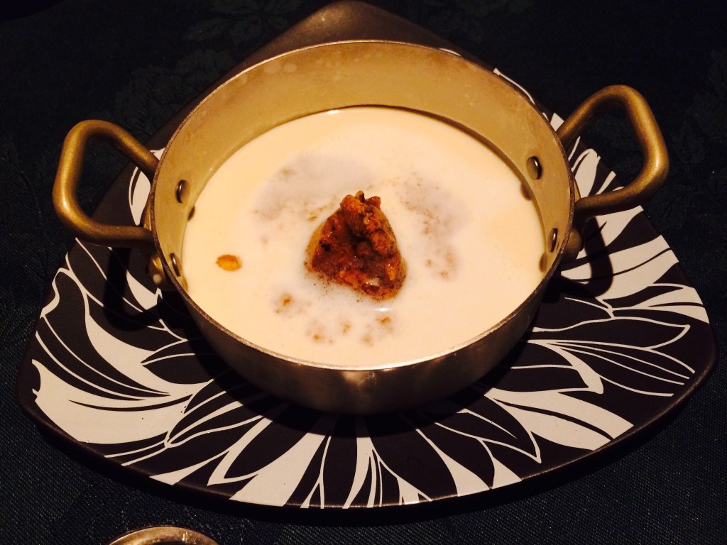 ジャガイモの冷製スープ、ウニ入り。