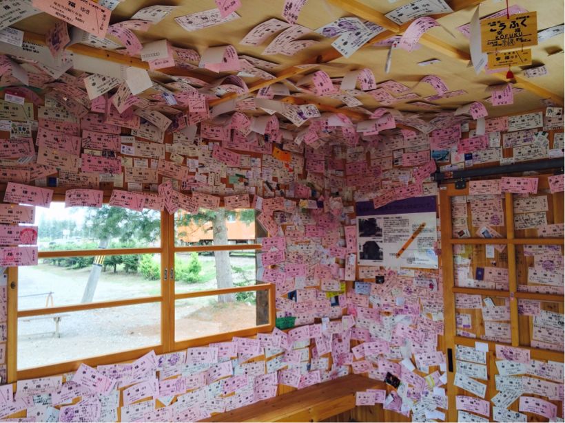 願い事の書かれた切符がたくさん貼り付けられていて、まるで神社‼︎